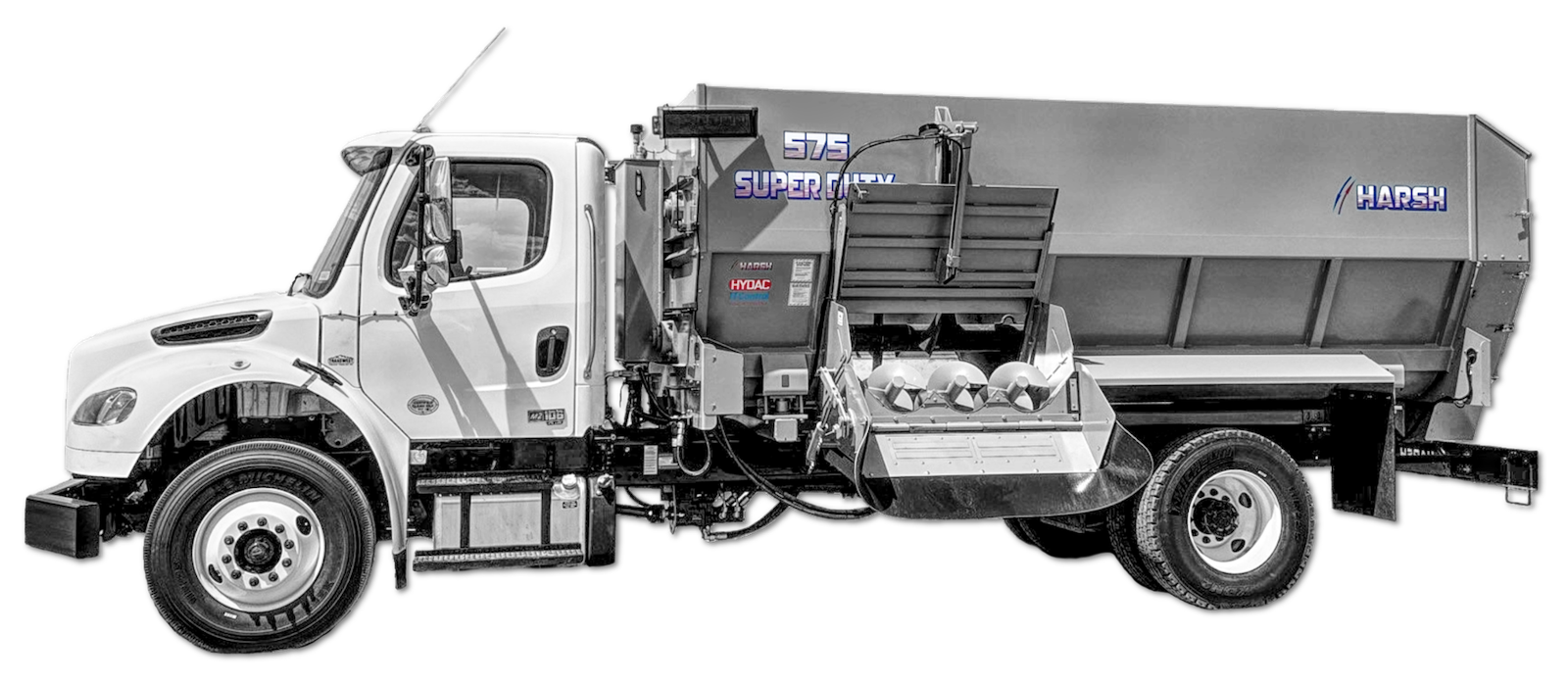 We now sell Harsh mixers and delivery boxes. Harsh manufactures horizontal mixers and delivery boxes and has been producing rugged, high-quality feeding equipment since 1948. Harsh TMR mixers feature four horizontal augers and are built to meet the demands of modern cattle feedlots. Recognized and often emulated worldwide, Harsh mixers are known for durability and performance. In partnership with HYDAC International, Harsh developed the TTControl feeding system—an advanced mobile feeding control platform that delivers precision, efficiency, and adaptability, optimizing the entire feeding process beyond mixing alone.